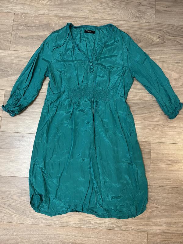 Качественное и очень красивое платье. Упитанную цвет не такой темный. Очень красивый. На резинке, садится по фигуре. Рукав 3/4. Вискоза.