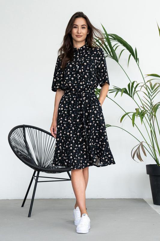 Літня сукня зі штапелю з асиметричним воланом та поясом Опис товару: Ця стильна сукня зі штапелю створена для комфорту та елегантності. Вільний А-образний силует робить її ідеальним вибором для будь-якого типу фігури. Довжина сукні трохи за коліно, що надає їй універсальності: вона підходить як для повсякденного носіння, так і для особливих випадків. Сукня виконана з високоякісного штапелю (60% віскоза, 40% бавовна), що забезпечує прохолоду та легкість навіть у найспекотніші дні. Внизу сукня доповнена асиметричним воланом, який додає оригінальності та динаміки образу. По переду є застібка на ґудзики, яка разом із коміром-стійкою підкреслює елегантність сукні. Середній рукав до ліктя вільного крою забезпечує комфорт та свободу рухів. До сукні в комплект входить пояс, який створює гарний жіночний силует, підкреслюючи талію. Основні характеристики: - Матеріал: Штапель (60% віскоза, 40% бавовна) - Зріст моделі: 170 см - Розмір одягу моделі: 42 - Силует: Вільний, А-образний - Довжина: Трохи за коліно (може варіюватися залежно від зросту) - Горловина: Комір-стійка - Рукава: Середні, до ліктя, вільні - Декоративні елементи: Асиметричний волан внизу, застібка на ґудзики по переду - Пояс: Іде в комплекті Догляд: - Прання при температурі 30°C - Прасувати злегка нагрітою праскою з вивороту Переваги: - Прохолодний матеріал: Натуральний штапель забезпечує комфорт та легкість у спекотні дні. - Оригінальний дизайн: Асиметричний волан та комір-стійка додають модний акцент. - Комфорт та зручність: Вільний крій та середні рукави забезпечують свободу руху. - Універсальність: Підходить для різних заходів та повсякденного носіння, з поясом або без нього. Ця сукня зі штапелю стане вашим улюбленим одягом для літа, даруючи вам комфорт та стиль у будь-якій ситуації. Орієнтовні заміри готового виробу: Розмір 42 44 46 48 50 52 54 56 Довжина сукні 101,7 102 102,3 102,6 102,9 103,2 103,3 103,5 Ширина по лінії грудей 48,4 50,5 52,7 54,8 56,9 59 61,1 63,2 Ширині по лінії бедер 57,2 59,9 62,6 65,2 67,9 70,5 72,8 75,1 Довжина руккава 28,4 28,7 29 29,4 29,7 30 30,3 30,7 Замовлення можна оформити через Вайбер Дивіться також: - Піджаки, кардигани, жилети - Костюми - Плаття Щоб слідкувати за новинками та отримувати додаткові знижки, приєднуйтесь: ✔️ Телеграм ✔️ ***** ✔️ *********