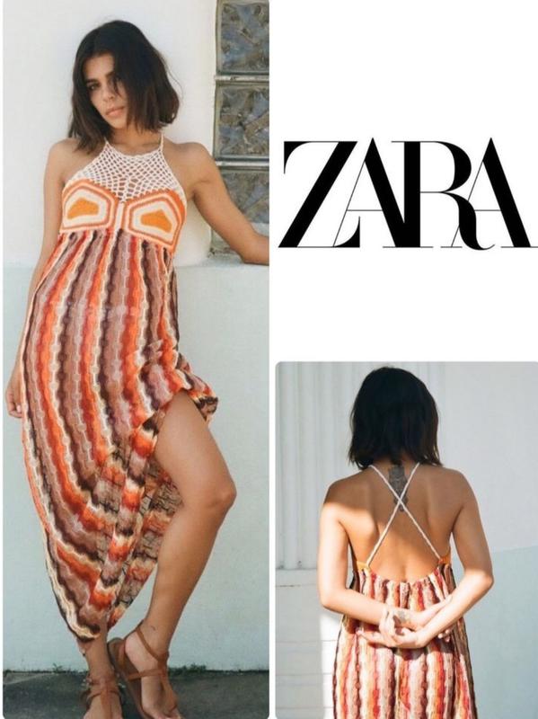 🌿плетеное платье в принт от Zara сзади на резинке Размер:S Замеры:ПО груди 43 см, длина 122 см