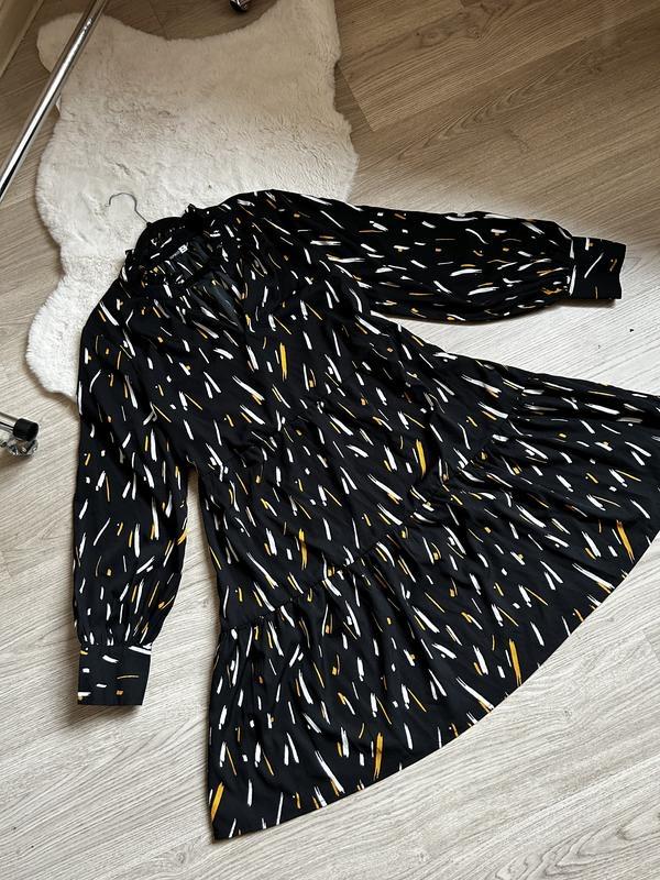 Неймовірно крута жіноча сукня вільного крою у абстрактну смужку з трендовим фасоном, що чудово підкреслити красу вашого тіла. Ця сукні стане чудовою покупкою для вашого гардеробу, яка гарною підійде під будь-який образ, бо її можна поєднувати з різними речами та носити з кедами, кросівками, балетками або туфлями. 🏷️Розмір на бирці: 8 Довжина від плеча - 88 см Довжина рукава - 57 см Груди - 92 см Талія - 90 см Стегна - вільно орієнтовно до 120 см