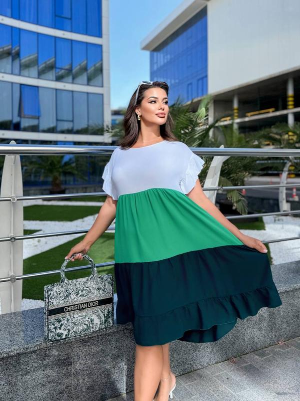 Модное летнее легкое платье с оборками на рукавах, легкое, воздушныхное Это платье станет твоим любимым этого лета. Размер:48-50,52-54,56-58 Ткань:урецкий штапель.Очень легкая, натуральная, приятная на ощупь ткань.Пропускает воздух, питая ткань именно то, что нужно в жаркую погоду. Уход: стирать при температуре не выше 30 градусов. Цвет:мокко, электрик,зеленый,пудра, фиолетовый. Цена: 795 грн