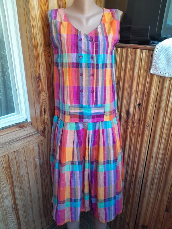 Яскрава вінтажна бавовняна міді-сукня 🌈 Стан чудовий Розмір вказаний 12, але див.заміри. Заміри: довжина 113, груди 46-47, талія 48, бедра 65.