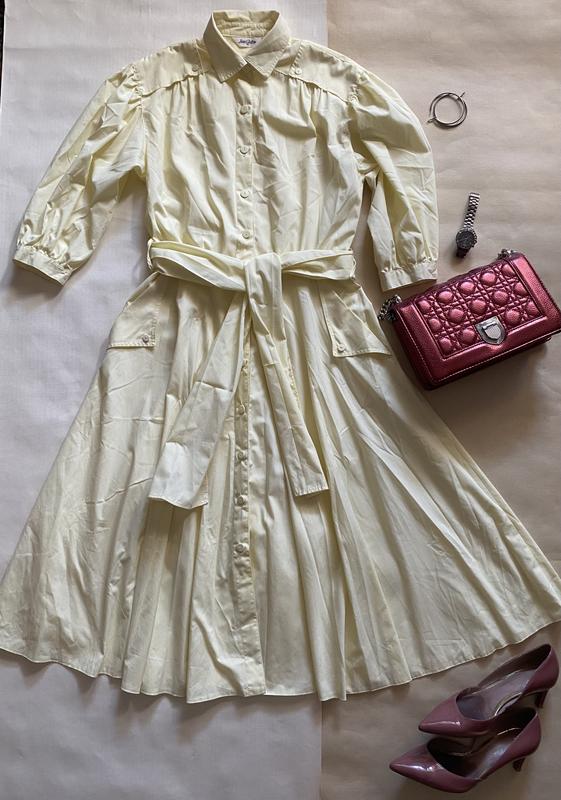 Сукня міді В трендовому кольорі вершкового масла Заміри: Довжина 116 см Рукав 42 см (він іде 3/4) ПОТ 36 см ПОГ 50 см Натуральна тканина Підійде як для прогулянок І для свята і на працю