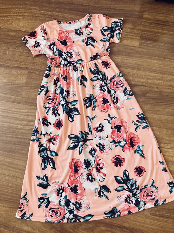 Шикарное миди платье с карманами, короткими рукавами. Тканина стрейчева, тягнеться. Основной цвет персиковый Замеры на фото Стан НОВОЇ
