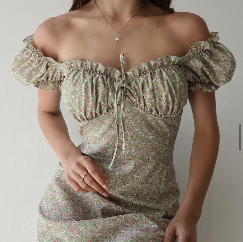 Український виробник. На талії регулюється за допомогою шнурівки-корсету. Спереду декольте також можна по-різному завʼязувати куліскою. Актуальні рукави ліхтарики. Розмір XS-S Красивий відтінок фісташка в рожеві квіти🌸 Довжина по спині - 107 см. ПОТ у вільному стані - 38 см. ПОБ - 48 см. Тканина приємна та трішки тягнеться.