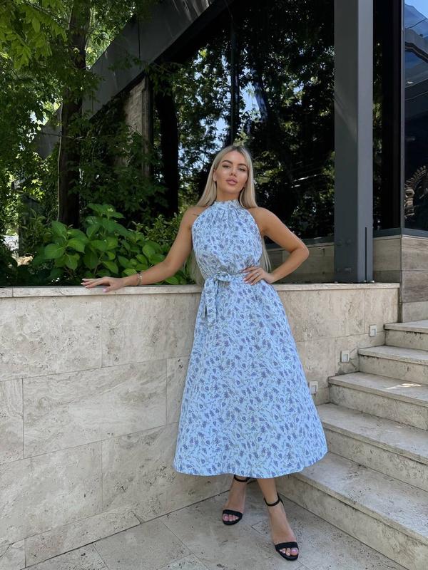 Сукня сарафан миди с поясом с открытими плечами софт