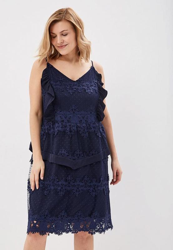 Вечернее коктельное платье батал с кружевом и гипюром. Платье с открытыми плечами и тонкими регулируемыми бретелями. Свободный крой. С воланами. V-образный вырез спереди. Горизонтальный сзади. Волнистый кружевной край. Верхний слой платья гипюровая кружевная сетка. На подкладке. Может носиться в двух вариантах: как оверсайз широкое платье, или же платье по фигуре. ‼️Новая с этикеткой!!️ Бренд: Lost Ink Цвет: синий Размер: XXXL, но модель оверсайз. Подойдет как на больший так и меньший размер. ПОГ: 66 см. Бедра - 76 см, тянется до 83 см. Длина изделия без учета брителей: 96 см Состав: 100% полиамид. Подкладка: 95% полиэстер, 5% эластан.