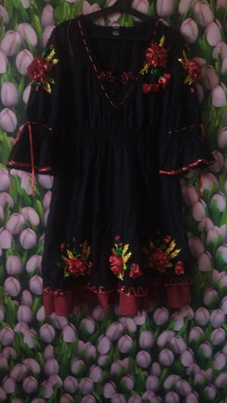 Платье вышитое лентами, удобная работа. Эффект на последнем фото – под рукой зашито и одну ленту следует пришить. Если есть мастерица - легко исправит ситуацию. низ - подкладка с фатином,ткань 💯% котон. полуобхват груди 58 полуобхват талии ( резиночка,резинка)48, тянет к 58 полуобхват бедер до 75 длина 105. За основу берется платье и расшил его для выступлений. невероятная и красивая!