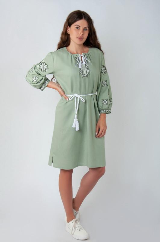 Ціна залежить від розміру 40р - 1000грн 42р - 1150грн 44р - 1190грн 46р - 1250грн 48р - 1280грн 50р - 1300грн 52р - 1330грн 54р - 1350грн Платье - вышиванка выполнена из полотна "Льон", длина "До колен". Модель имеет удобный и стильный крой, объемные рукава в низу на резинке, пояс и кисточки. Платье украшено красивой вышивкой. Такая вещь отлично подойдет для торжественных событий, встреч и прогулок, ее легко комбинировать с классическими туфлями "Красники", лоферами или кроссовками. Полотно: лляна тканина Состав: 55% лен, 45% вискоза. Вышитый орнамент: машинная вышивка. Советы по уходу: стирать при температуре не более 30°C. Разрешается стирка в режиме "ручная" или "деликатная", вышивку гладить только с изнанки. Изделие может давать незначительную усадку.