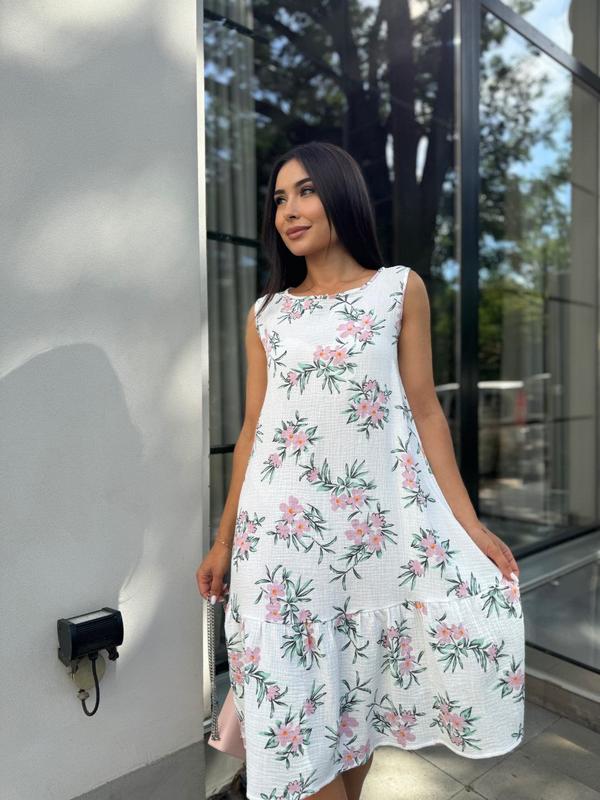 Летнее женское платье Модель - (046) Тканина :муслин.(принт) Размер:42-44,46-48,50-52,54-56,58 -60. Цвет - белый с цветами. Идеальное и удобное летнее платье.