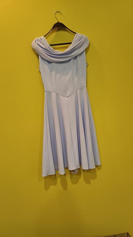 Платье на торжественное событие.нежно голубого цвета, фото так не передает цвет. по запросу дополнительно фото могу сделать. Длина 100см. на окончательных фото видны недостатки, но всё можно отстирать. Подъемник на S-M