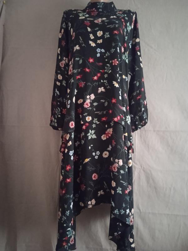 пог 53, пот 48, рукав от шеи 69, длина 93/110, асимметричное, оборка на талии
