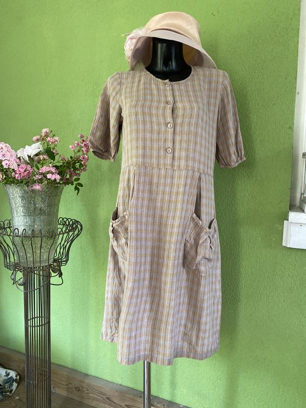 Стильное качественное платье из конопли в идеальном состоянии. Склад:конопля-100/. Размер по набору-XS. Замеры: длина-96 см, ПОГ-45 см., ПОБ-53 см. За счет фасона отлично подойдет на S/M.