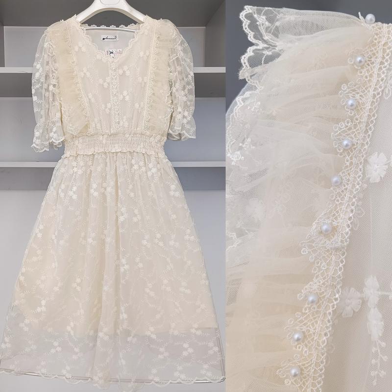 Очень красивое нежное платье🤍 Отличное качество👌🌸🌸 Колые айвори Размер универсальный С/М Пог 50, талия на резинке, длина 106см Цена со скидкой 550грн🔥🔥🔥 Коттили дорого