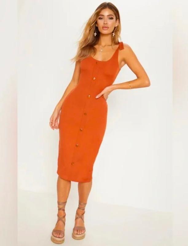 Платье миди в рубчик на завязках. Цвет терракотовый. Стан идеален. Размер M.