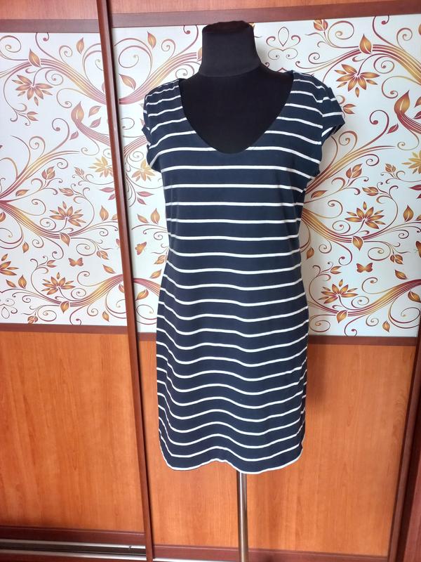 платье из трикотажа, 95%cotton, синего цвета в белую полоску, в идеальном состоянии, без нюансов. длина 86, ОБ 96, ОГ96