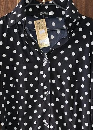 Сукня -сорочка в горох з розрізами. Може бути, як домашній одяг. Рукав на резинці. Тканина легенька. Буде десь на розмір 50-52. Додаткові фото та заміри. запитуйте.