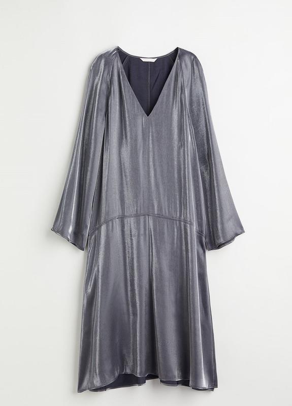 Невероятное платье до щиколотки из блестящей ткани. Свободный крой с V-образным вырезом, длинными рукавами реглан и асимметричным швом на высоте бедер. Без подкладки. Можно носить под пояс Размер м ( подойдет на с, м, л) 75 вискоза 25 полиэстер Состояние новой, одевалась 1 раз Без дефектов