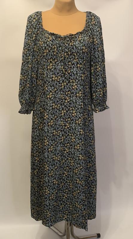 Мила максі сукня від Primark повністю нова, дуже гарної якості,тканина середньої щільності не просвічує,фасон приталений,декольте з квадратним вирізом,не високий розріз на нозі. Вказаний розмір uk 18,eur 46,маломірить,підійде орієнтовно на 48/50р,порівнюйте з вимірами 👇👇👇 ПОГ 50-51 см ПОТ 46-48 см ПОБ 55-56 см Довжина 130 см,до шва 35 см Розріз 40 см Рукав 57 см,ширина 27 см Арт 3699,35