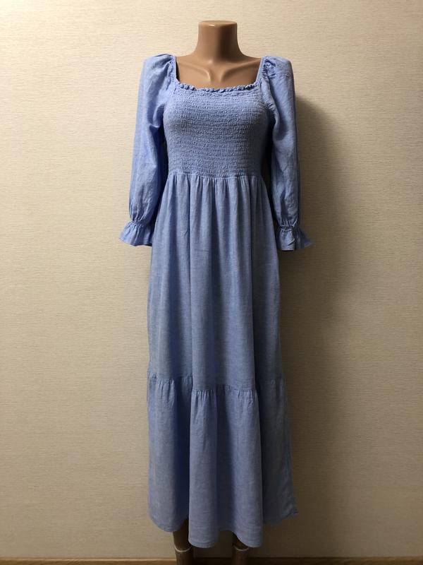 Грудь-35-51,талия-32-47,бедра-63,длина-117,рукав-49. Состав-51% лен 49% вискоза.