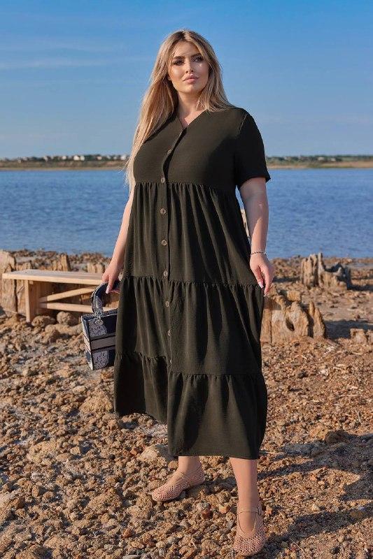Сукня тканина американський креп розміри 50-52,54-56,58-60 Кольори:чорний,хакі,малина,блакитний Довжина виробу: 123см Довжина рукава від плеча: 25 см Вимірювання готового виробу: 50-52 ОГ 116 ОТ 116 ОБ 156 54-56 ОГ 120 ОТ 120 ОБ 160 58-60 ОГ 124 ОТ 124 ОБ 164 FD