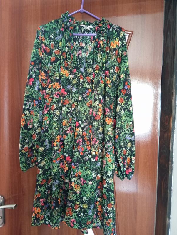 Легкое яркое платье на длинный рукав на резинке в стиле бохо