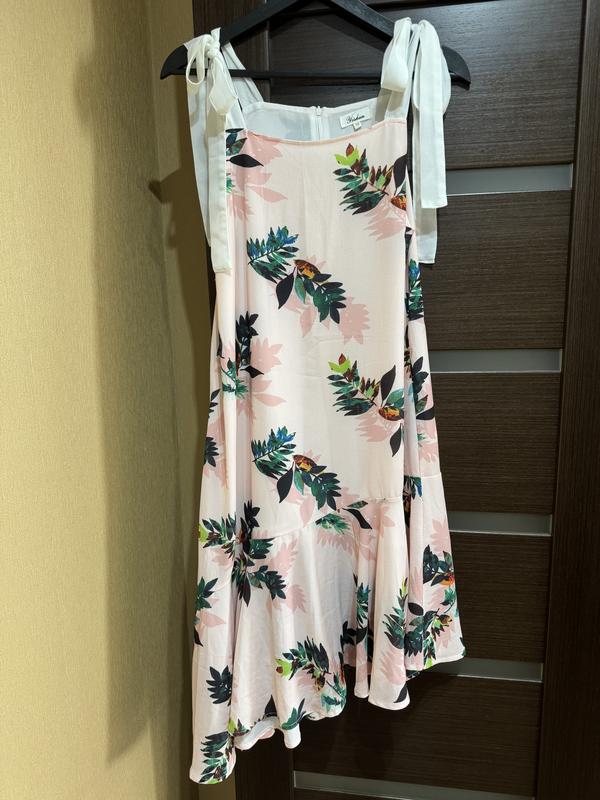 Женское летнее платье в цветочный принт свободного фасона, по плечам на завязках.Размер М, подойдет на S.