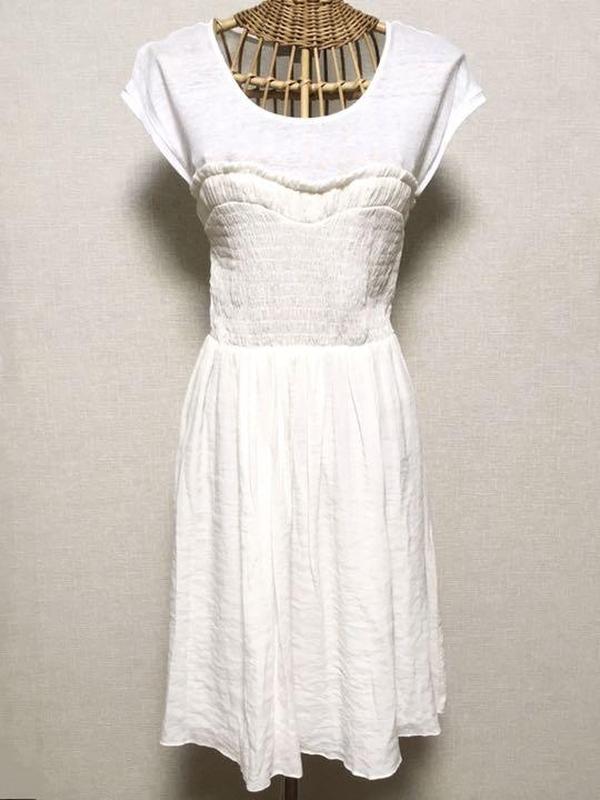 Роскошное летнее платье от французского бренда Sandro Paris, оригинал Цвет айвори Юбка на подкладе Размер указан 2, подойдет на S-M Платье садится отлично Есть дефект в виде затяжки, в цене учтены но его и незаметно