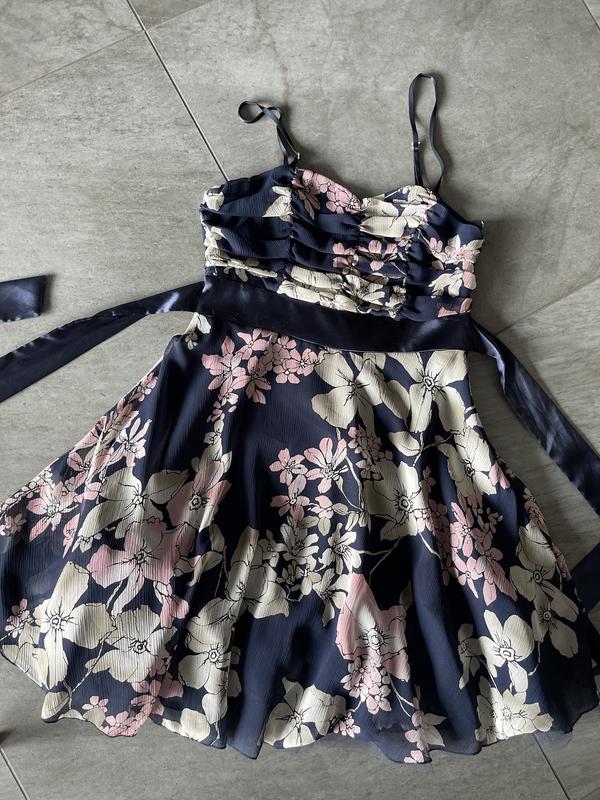 Платье сарафан шифоновый, на тонких регуляционных брителях, подвешивается под грудью сзади на бант шелковой лентой.Подъюбник оторотованный фатином для визуального объема юбки-пачки.Драпирован на груди.Розовый размер S.Синий размер M.