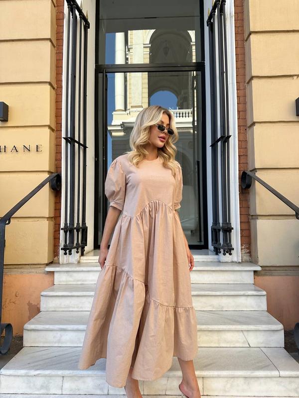 Платье голубое розовое беж миди-платье мыди голубое бежевое