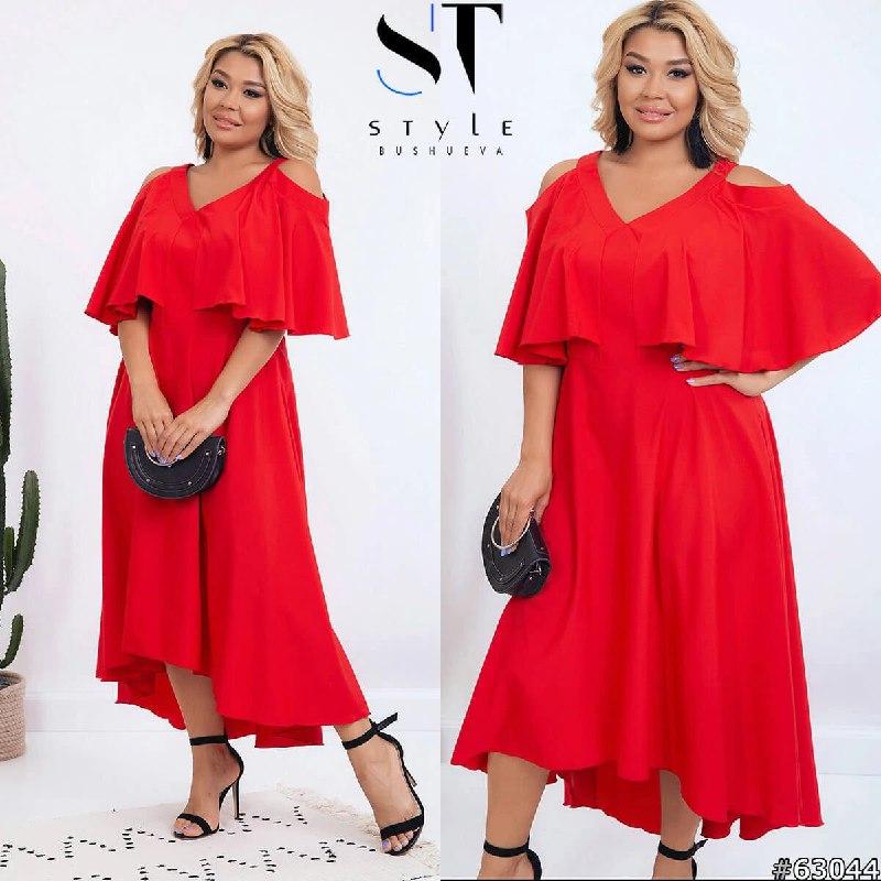 Розміри — 52-54;56-58;60-62 Матеріал виробу: супер софт Заміри орієнтовані 52-54 рукав від горловини 38 см, волан — 28 см груди 104 см, талія 90 см стегна 160 см 56-58 рукавів від горловини 42 см, волан 28 см груди — 116 см, талія 100 см стегна — 168 см 60-62 рукав від горловини 44 см волан 29 см груди — 124 см, талія 106 см стегна — 176 см Блискавки в боці 25 см (сукня сонце кльош lot