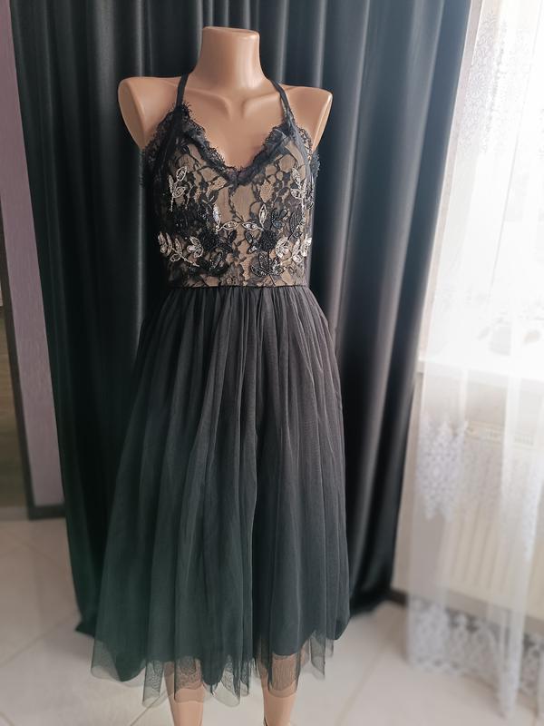 Продается новая современная, платье черного цвета чрезвычайно красивая и стильная. На корсете кружево, вышивка из бисера и поместья, живой выглядит еще эффектнее,фото не передает всей красоты Привезено с заграницы, отдам гораздо дешевле, потому что не подходит размер. Бретели регулируются, сбоку застежка молния.