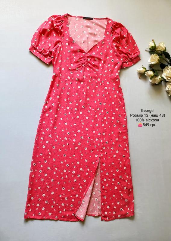 Платье миди от George. Размер 12 (наш 48). Состав: 100% вискоза. Замеры: длина по спинке 116 см, ПОГ 48 см, ПОТ 40 см резинка тянется до 48 см, ПОБ 49 см, плечо 4 см, длина рукава 30 см. Состояние новое.