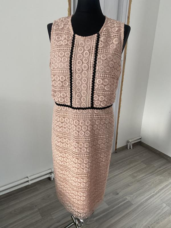 Платье нежного розового цвета из дорогого качественного кружева, модель приталенная, без рукавов, на спинке молния.