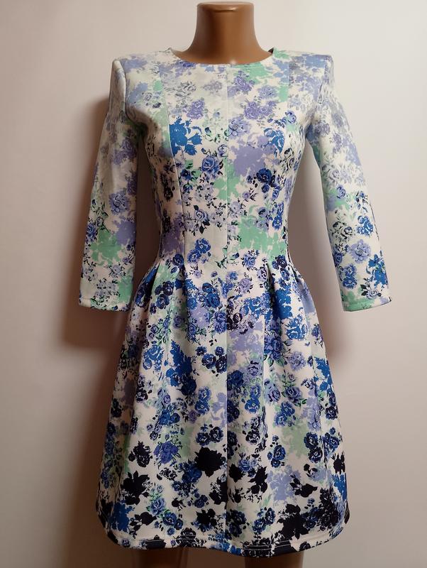 🍒Xs размер (манекен размера S) 🍒красивое платье в цветочный принт Kira Plastinina длина от плеча 84 см плечи 36 см длина рукава 42 см полуобхват груди 40-45 см тянется полу охват талии 32-37 см тянется полуобхват бедер 52 см 🍒95% полиэстер 5% спандекс ткань дайвинг 🍒состояние новой вещи #205#