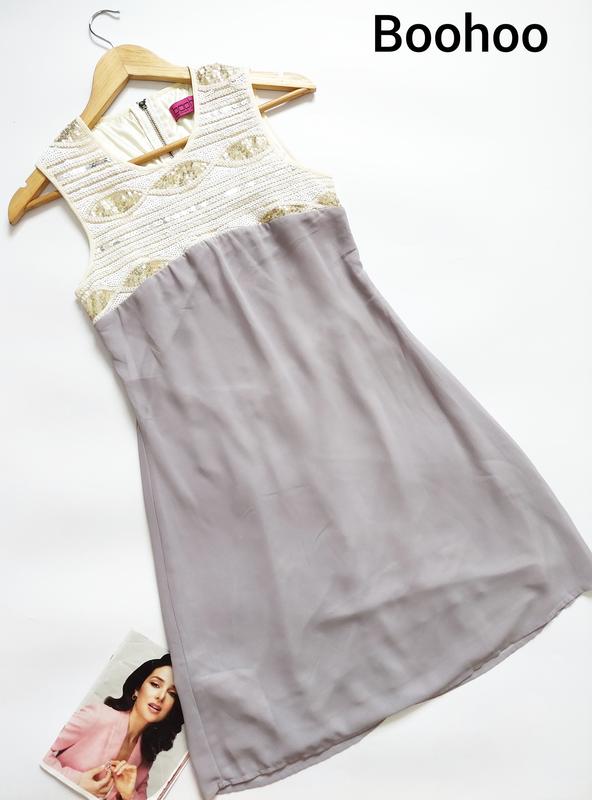 Женское платье миди серого цвета, вверх с блестками от бренда boohoo
