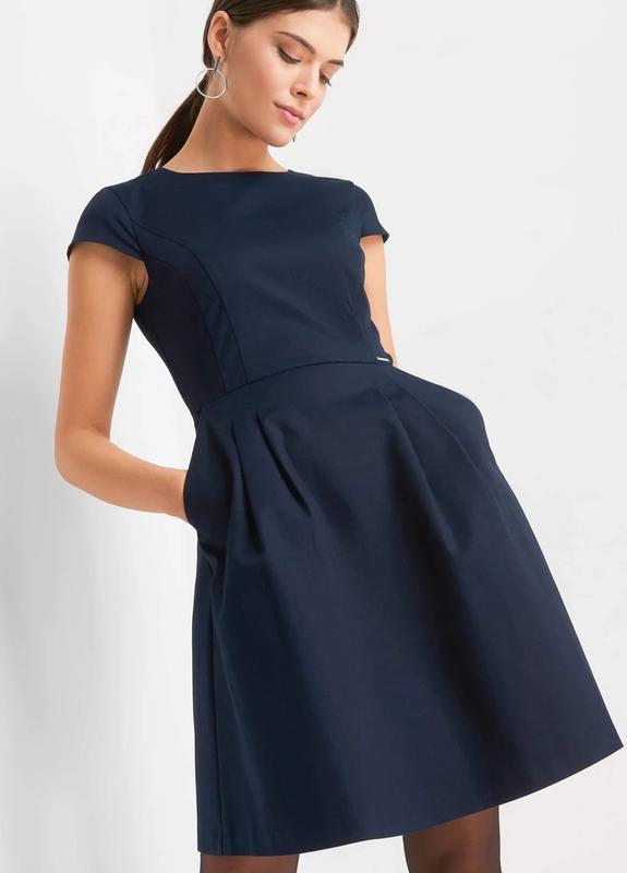 Сукня приталенного силуету. Модель с коротким рукавом и круглым вырезом. Сзади застегивается на молнию Платье темно синяя Orsay Размер: EU 40, международный L, украинский 48 Длина: Меди Длина рукава: короткий Цвет: Темно-синий Стиль: Повседневный (casual) Состав: 62% хлопок, 35% полиэстер, 3% эластан Страна регистрации бренда: Германия Размерная сетка производителя на этот размер: ОГ - 94-98, ОТ - 76-80; ОС- 100-104.