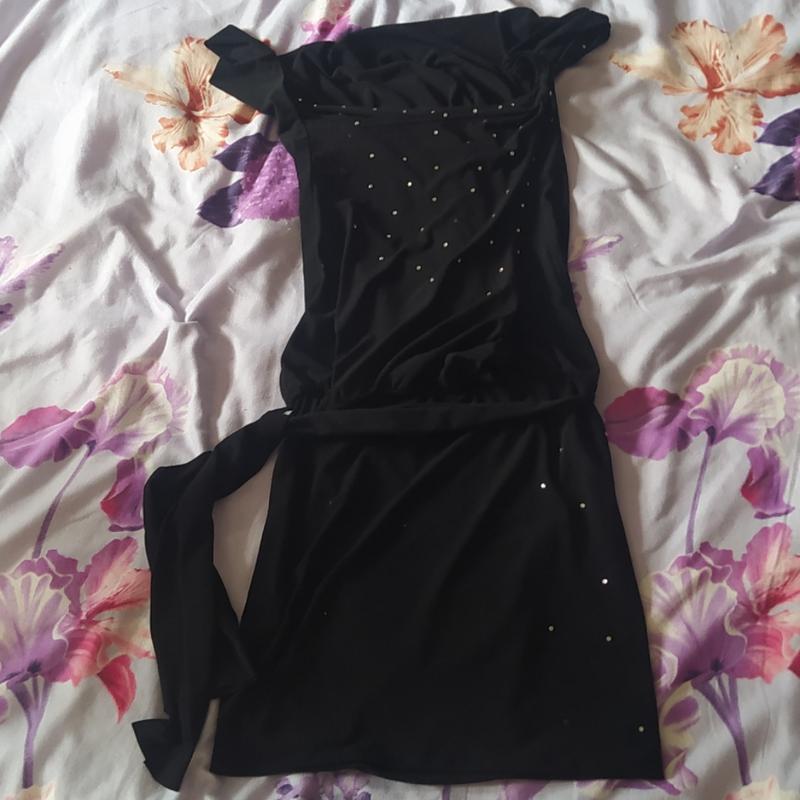 Платье коктельное.Лиф с запахом. На талии пояс. Подойдет для худенькой и высокой девушки. Фото на модели нет, так как платье не подходит по размеру. Длина - 95 П.Об.Т- 30