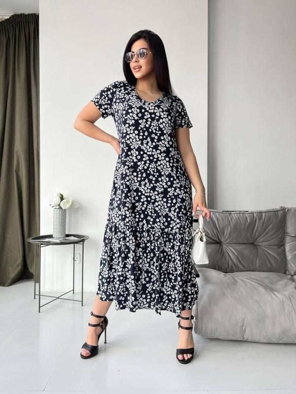 Женское летнее платье с воланом по низу и открытой спинкой. Размеры: 50,52,54,56 Ткань: турецкий штапель приятный к телу! Цвета: в ассортименте Замеры: ❤️Обхват груди (50р)100см,(52р)104см (56р)108см,(56р)112см ❤️Обхват талии (50р)100см,(52р)104см (54р)108см,(56р)112см ❤️Обхват бедер (50р)120см,(52р)124см (54р)128см,(56р)132см ❤️Длина изделия (50р)127см,(52р)129см (54р)131см,(56р)133см