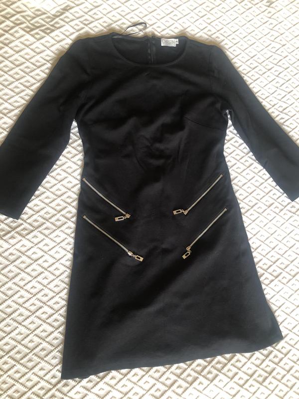 Платье черного цвета, размер до колена, с серебряными замками в виде отделки, состав выскоза, размер 34