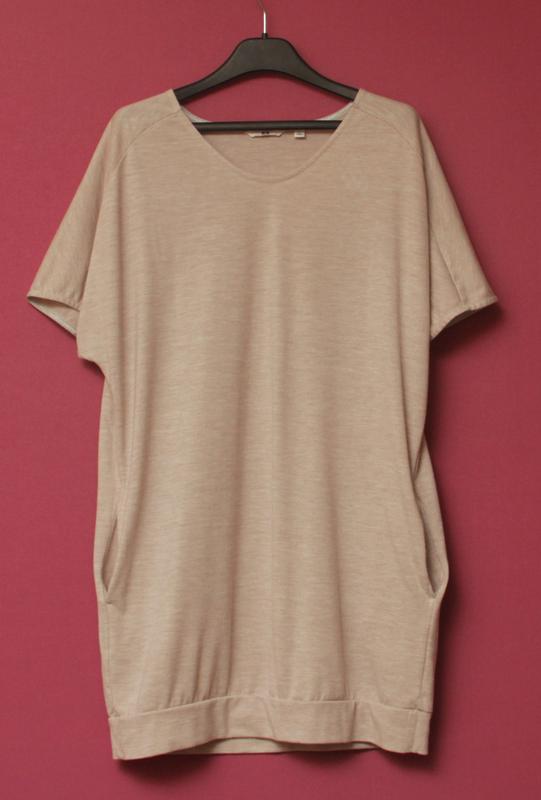 Платье из вискозы и полиестера от Uniqlo. Плечей и подмышек не имеет, соткано в две основные панели. Два кармана под руки. Идет ближе к М. Остальные параметры кроме длины замереть трудно, по причине отсутствия швов Длинна - 81