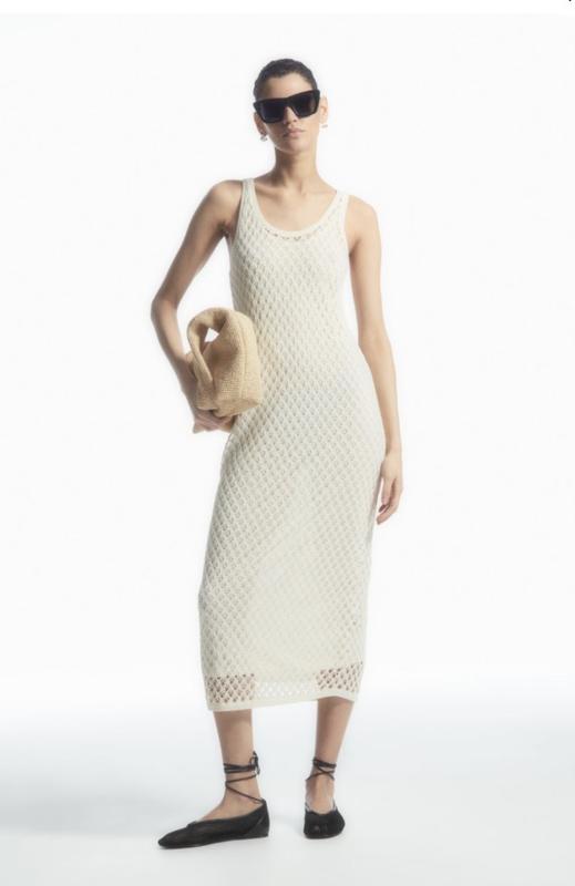Это платье миди из хлопковой смеси и кружевной фактуры нежного кремового оттенка. Имеет подклад В наличии S