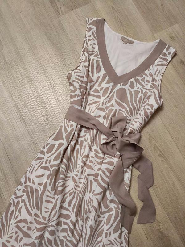 Дуже красиве плаття міді в принт! Приємна віскозна тканина, на підкладці! Плаття викроєне косою, зарахунок чого прекрасного сідає на фігурі! Талію звужена та поясок підкреслює талію. Плаття нове, не ножене, стік. Розмір вказаний 16(2XL), підходить на XL. краще. Довжина 117 см, півобхват грудей під проймою 47 см, півобхват поясу, де поясок зав'язуємо 44 см, пів обхват стегна 49 см