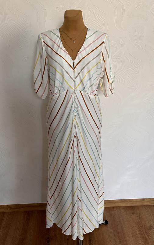 Жіноча сукня Oliver Bonas Розмір:eur 44,uk 16 Ціна аналогічної сукні в інтернеті 96€,по знижці останній маленький розмір 34€ Моя ціна значно приємніша 👇👇👇 Ціна 1200🏷 по знижці 2дні🔥 1000грн🔥 Встигніть придбати😻 Сукня нова з бірками,але при детальному огляді помітила поверхневе забруднення,показала на останньому фото,в ціні враховано. По плечах 42 Ширина під проймами рукавів 55-57 см По талії 45-57 см В районі стегон 53-58 см Довжина по спині від плеча 132 см,до талії 39 см Довжина рукава від шва 31 см,ширина 19 см ХАРАКТЕРИСТИКА ТОВАРУ Країна виготовлення Болгарія Матеріал:100% віскоза Параметри манекена 92/68/93см Арт 5029#2