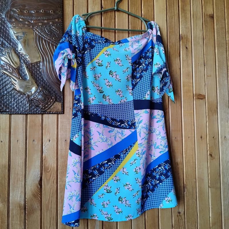 size 🍒PEACOCKS🍒 16/44 Бангладеш Полиэстер 98% еластан 2% В НАЯВНОСТИ бижутерия, джинсы, корректирующая и ниж.белизн., термо куртки, теп.джинсы, шапки, обувь... Яркое новое летнее платье из откры- теми плечами в стиле пэчворк. Ткань приятная на ощупь и к телу. Рукав "слореза", см.фото. 👇 Обязательно К покупке сверьте замеры: - Длина 88 см - ПОГ 54 см - ПОТ 53 см - ПОБ 59 см - ПО низу 69 см - Длина рукава 28 см - Ширина рукава 23 см - Боковой шов 68 см 🙂 С нетерпением жду у меня на странице. Желаю удачных покупок и супер настроения от них.
