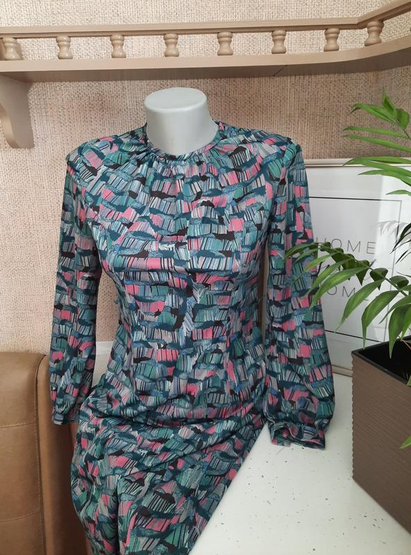 Стильное платье в принт. Хорошего качества, приятное к телу. Материал не просвечивается, в меру тянется. Зади защелкивается на замочек. Без дефектов. Замеры: Плечи: 34 см ПОГ: 43 см. ПОТ: 37 см. Длина по спинке: 98 см. Длина рукава: 53 см. Доставка: Высылаю через Новую Пошту, Укр-почту.