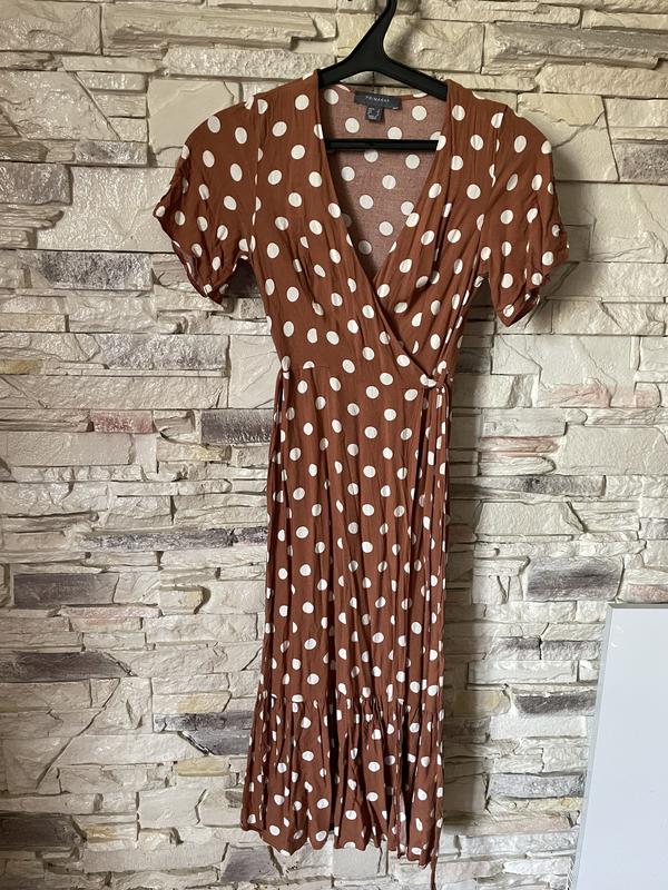 В ідеальному стані, гарного актуального кольору Тканина 100% віскоза Розмір 34/XS Довжина 110 см ПОГ 38 см ПОТ мінімум 28 см (регулюється поясом) ПОС мін 45 см Рукав 21 см