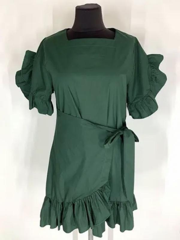 Женское летнее платье Ткань - натуральный Хлопок, приятная к телу Интересный дизайн - рукава-фонарики, подол на запах В наличии размер 46-48 Замеры Длина изделия 90см Полуобхват груди 48см Полуобхват талии 50см