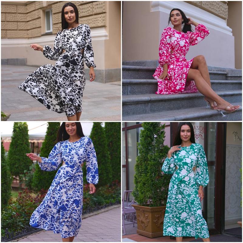 Платье софт миди с длинными рукавами и красивыми узорами размеры норма