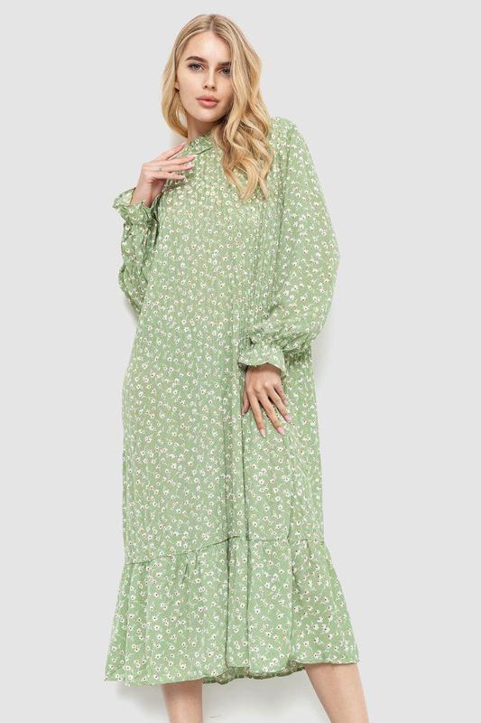 Платье свободного кроя с цветочным принтом, цвет оливковый, 204r201